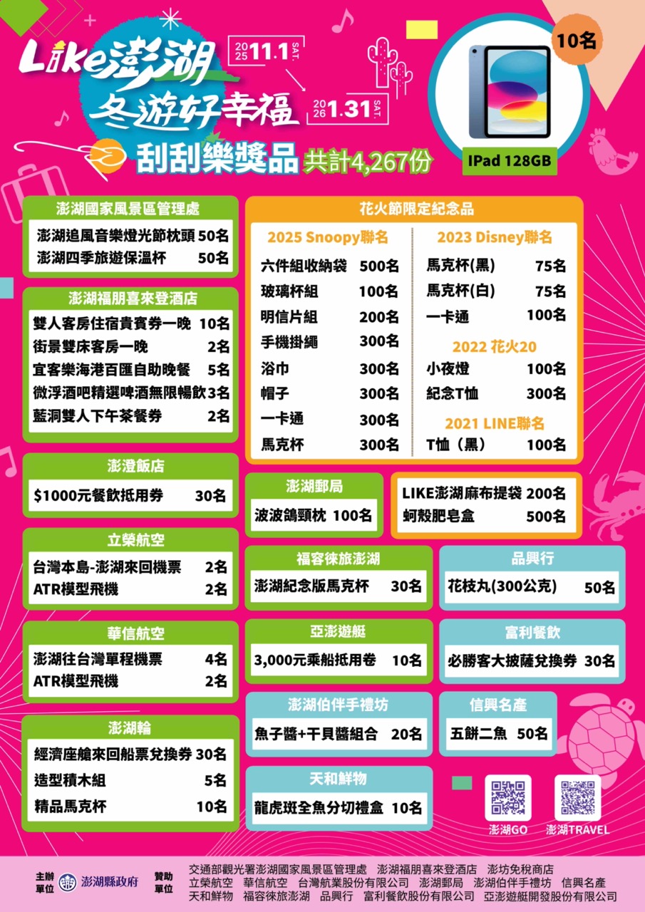 詳細活動資訊: 2025冬遊澎湖消費券 (https://2025dongyoupenghuxiaofeiquan.webnode.page/ )